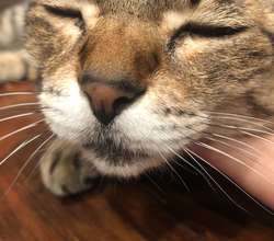 のどを撫でられ顔